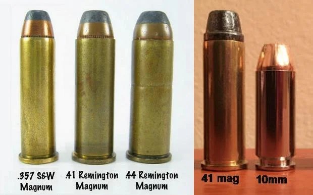 Comparison of the 357, 41, and 44 Magnums; Many today attempt to compare the 41 Magnum to the 10mm which IMHO is no comparison. Photo courtesy of https://www.glocktalk.com/threads/the-41-remington-magnum-the-under-appreciated-middle-magnum.1878548
